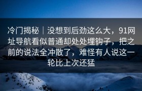 冷门揭秘|没想到后劲这么大,91网址导航看似普通却处处埋钩子,把之前的说法全冲散了,难怪有人说这一轮比上次还猛